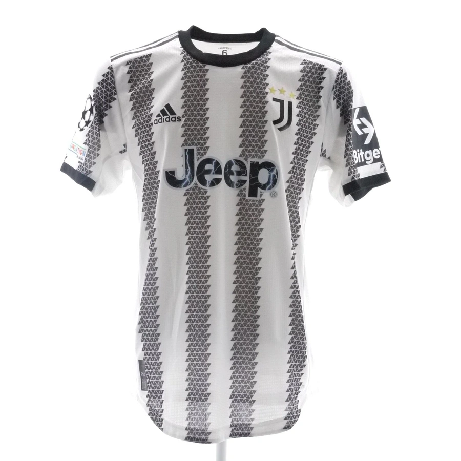 La maglia gara della Juventus indossata da Kostic in occasione della partita di Champions League contro il PSG giocata il 6/09/22, stagione 2022/23.