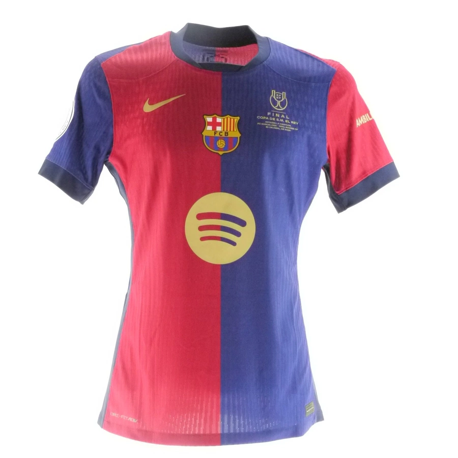 Maglia gara del Barcellona preparata / indossata da Lamine Yamal nella partita contro il Real Madrid giocata il 26/04/2025, valida per la finale di Coppa del Re, stagione 2024/25.