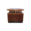 - Piano e Finitura in Legno Caldo: Il corpo e il piano sono realizzati in legno con finitura calda (probabilmente noce o palissandro), con venature a vista. Il piano di lavoro presenta un bordo spesso e squadrato che ne sottolinea la solidità.