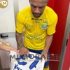 Questo cimelio fa parte della fornitura gara messa a disposizione degli atleti in occasione delle competizioni ufficiali e differisce nelle sue caratteristiche peculiari dai prodotti messi in commercio dallo sponsor tecnico, potrebbe essere stato indossato in partita e lavato dopo il termine della gara oppure preparato per il match ma poi non utilizzato.