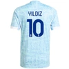 La maglia store della Juventus, stagione 2025/26, personalizzata con nome e numero di Yildiz autografata dal giocatore.