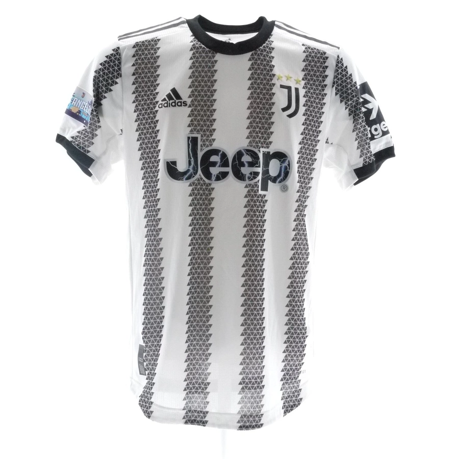Maglia gara della Juventus preparata / indossata da De Sciglio in occasione dell'amichevole estiva contro il giocata il Real Madrid giocata il 30/07/22 a Los Angeles, stagione 2022/23.