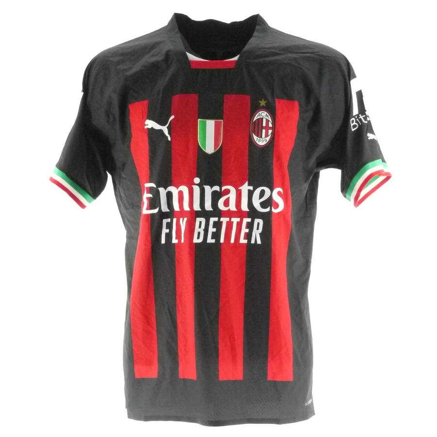 La maglia gara del Milan preparata/indossata da Calabria in occasione di una partita di Serie A, stagione 2022/23.
