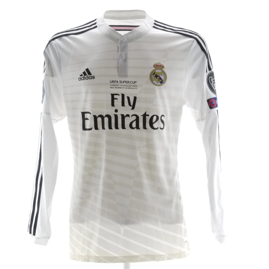 Maglia gara del Real Madrid preparata / indossata da Ronaldo nella partita partita contro il Siviglia giocata il 12/08/2014, valida per la finale di Supercoppa UEFA, stagione 2014/15.