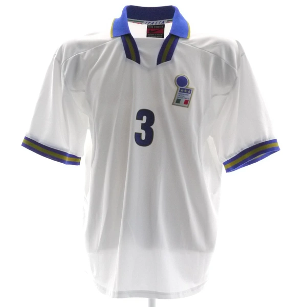 La maglia gara dell'Italia preparata / indossata da Maldini in occasione di una partita ufficiale, stagione 1996/97.