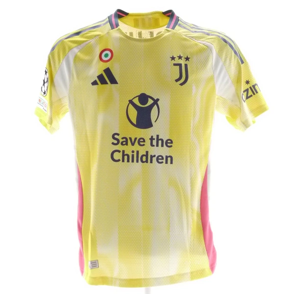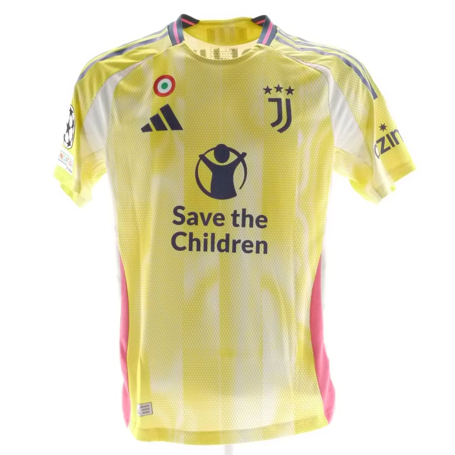 La maglia gara della Juventus preparata/indossata da Kalulu in occasione di una partita di Champions League, stagione 2024/25.