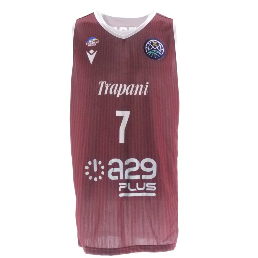 La canotta gara del Trapani Shark preparata/indossata da Alibegovic in occasione di una partita di Basket Champions League, stagione 2025/26.