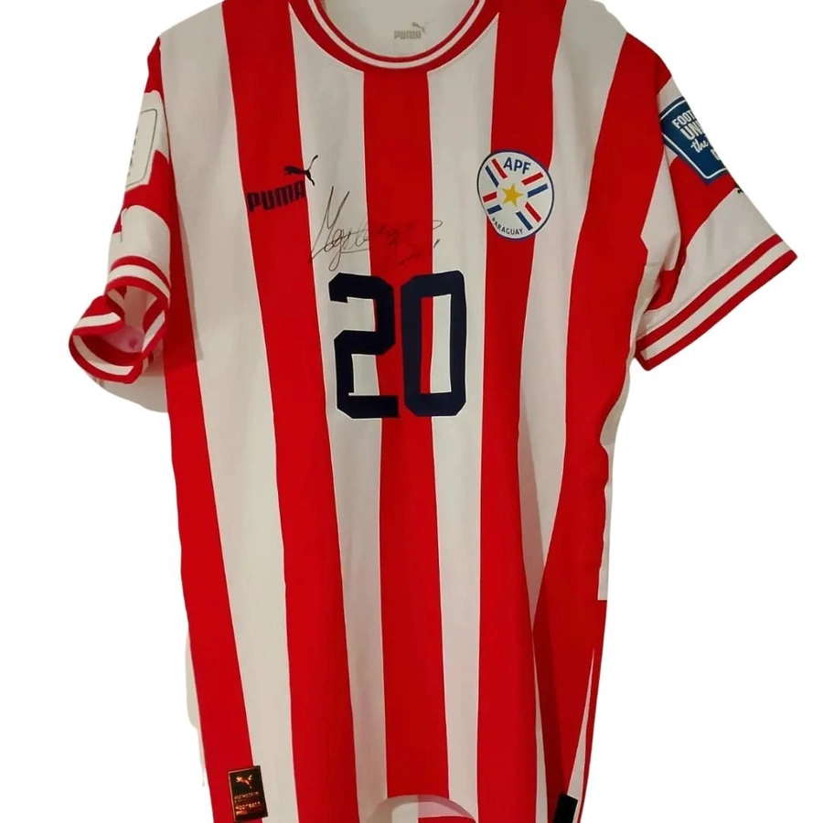 Maglia gara del Paraguay preparata per Galarza per la partita contro la Bolivia giocata il 17/10/2023, valida per le qualificazioni al Mondiale Fifa 2026.