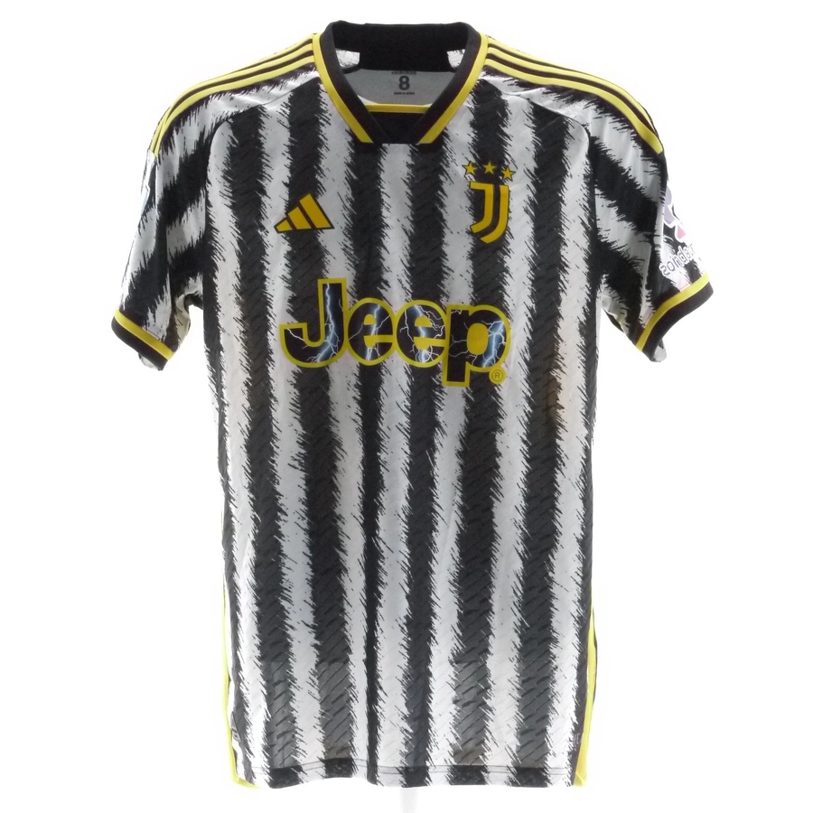 La maglia gara della Juventus preparata/indossata da Vlahovic in occasione di una partita di Serie A, stagione 2023/24.