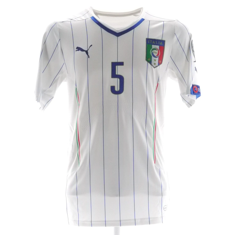 Maglia gara dell'Italia preparata / indossata da Astori durante una partita valida per le qualificazioni all'Europeo 2016, stagione 2014.