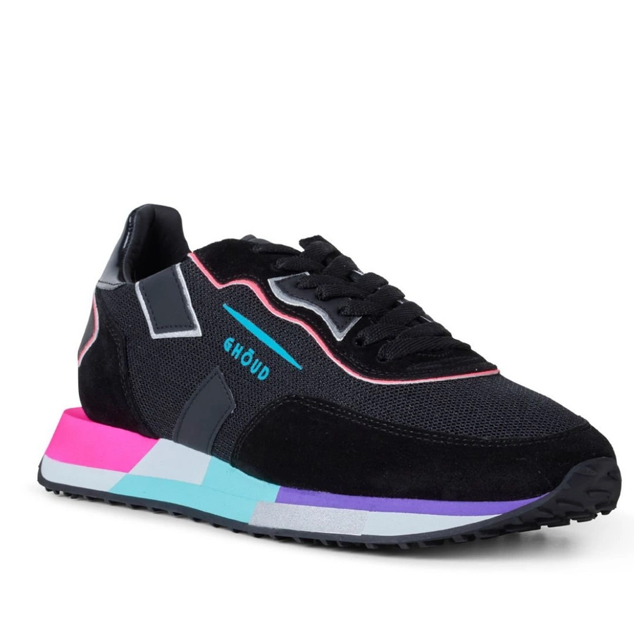 Contemporanea fashion running da donna, la Sneakers Rush Low di Ghōud Venice presenta un design minimale caratterizzato da linee geometriche e decise. Tomaia in tessuto a rete e suede con dettagli in materiale tecnico per un look distintivo. Iconico logo stampato lateralmente. Multicolore Nera.