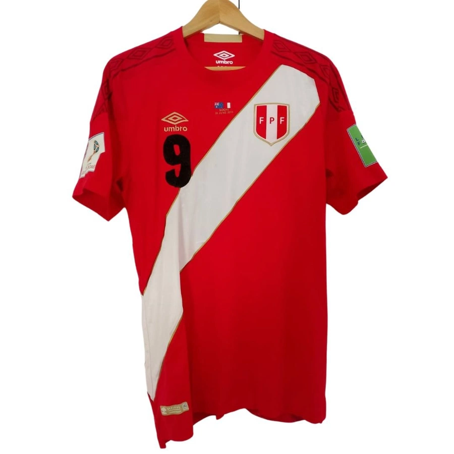 Maglia gara del Perù preparata / indossata da Guerrero in occasione della partita contro l'Australia valida per la fase a gironi dei Mondiali di Russia 2018, giocata il 26/06/2018.