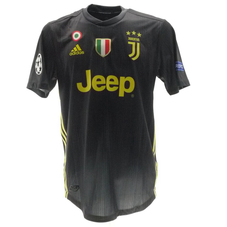 La maglia gara della Juventus preparata / indossata da Ronaldo in occasione di una partita di Champions League, stagione 2018/2019.