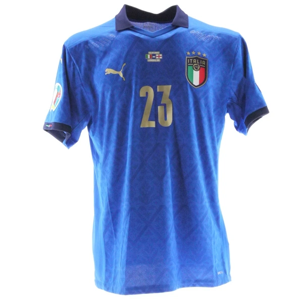 La maglia gara dell'Italia preparata / indossata da Bastoni in occasione della Finale di Euro2020 giocata contro l'Inghilterra l'11/07/21, stagione 2020/21.
