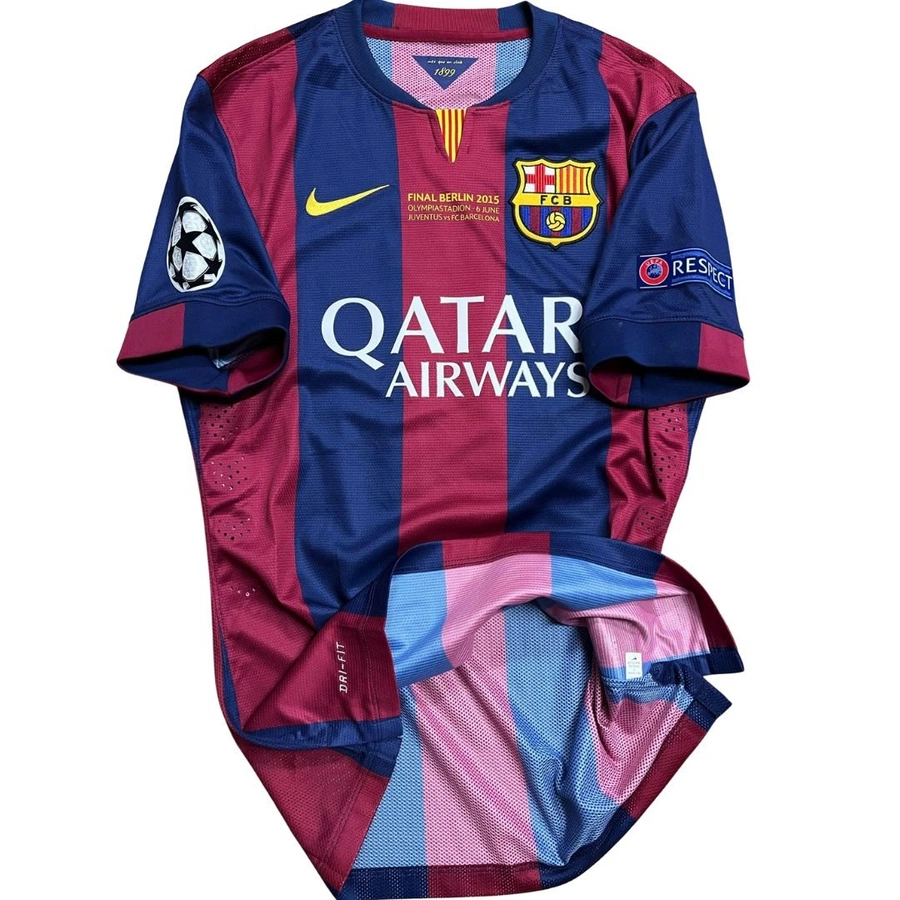 La maglia gara del Barcellona preparata / indossata da Iniesta in occasione della finale di Champions League contro la Juventus giocata il 6/06/15, stagione 2014/15.
