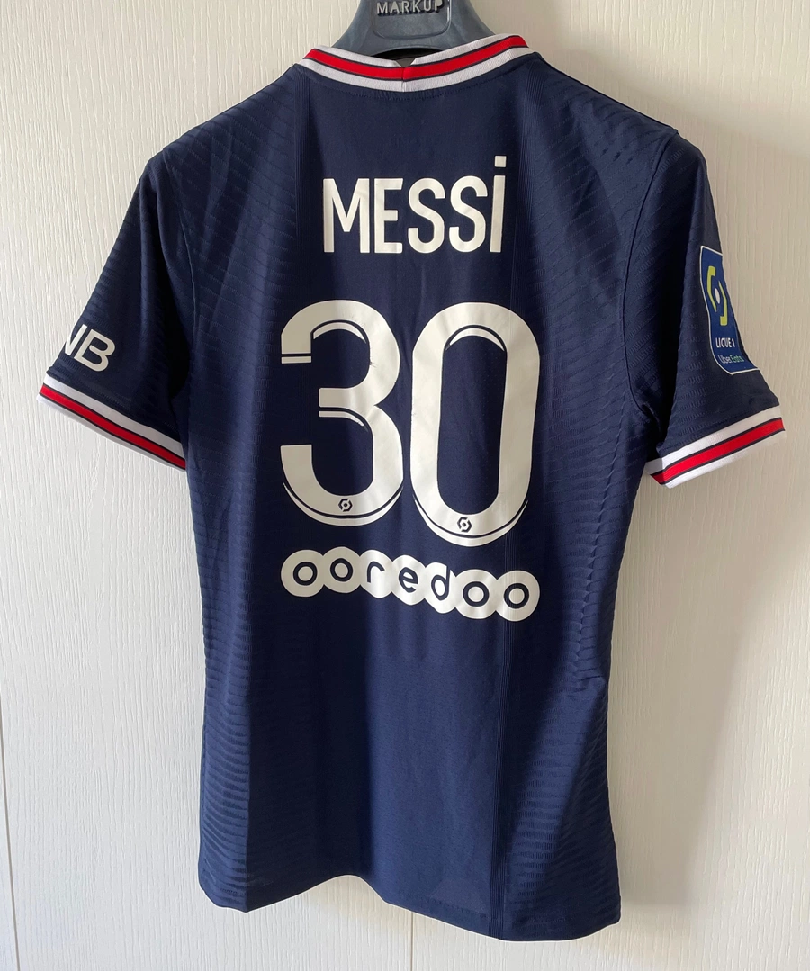 Maglia gara del PSG preparata / indossata da Messi in occasione di una partita de Ligue 1, stagione 2021/22.