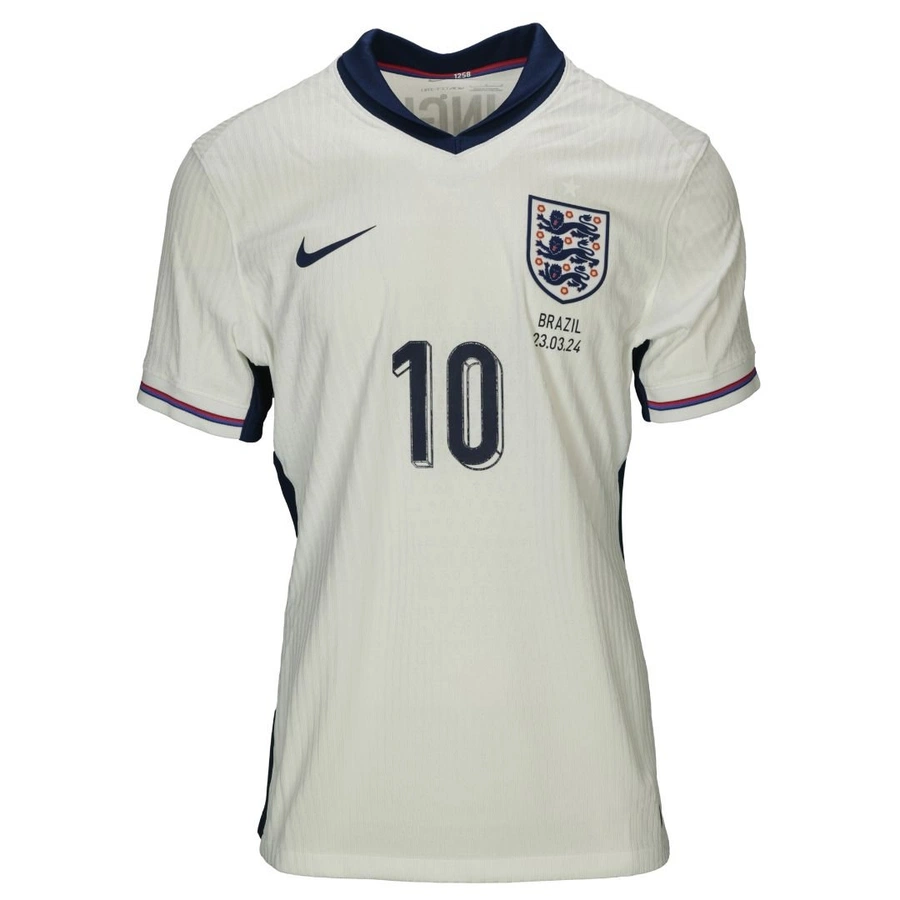La maglia gara dell'Inghilterra preparata / indossata da Bellingham nella partita amichevole contro il Brasile giocata il 23/03/2024.