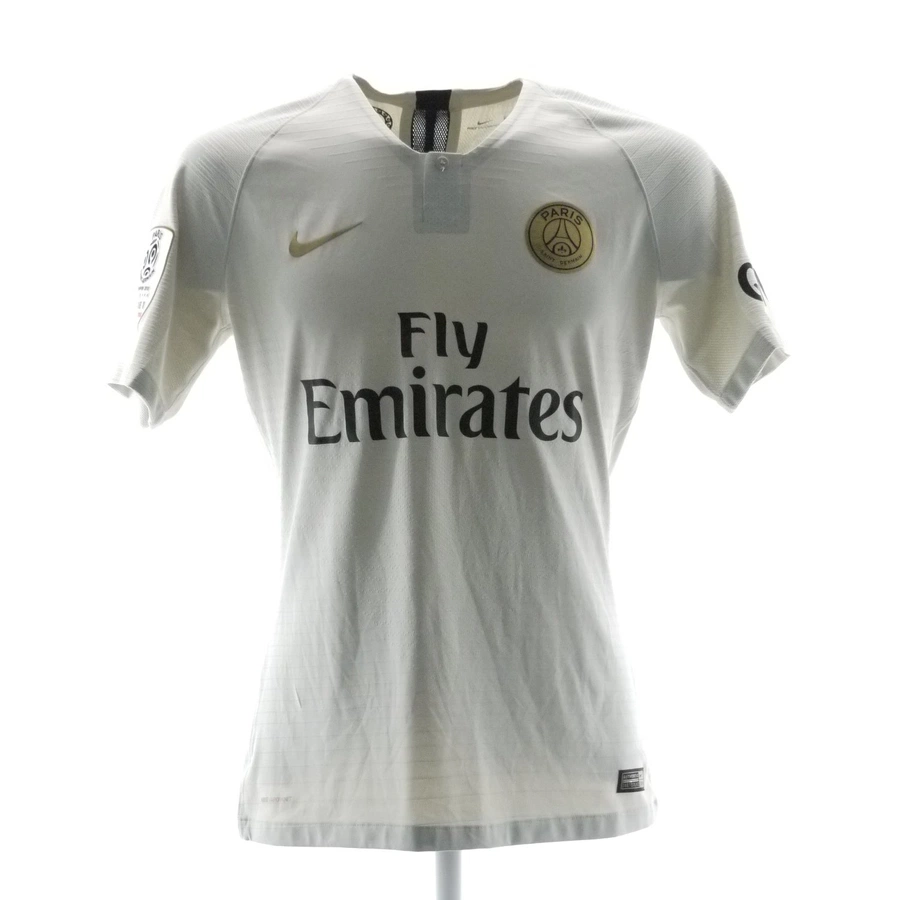 Maglia gara del Paris Saint Germain preparata / indossata da Mbappè in occasione di una partita della ligue1, stagione 2018/19.