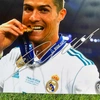 Fotografia ritraente Cristiano Ronaldo con il Real Madrid durante i festeggiamenti dopo la vittoria in finale di Champions League contro il Liverpool.