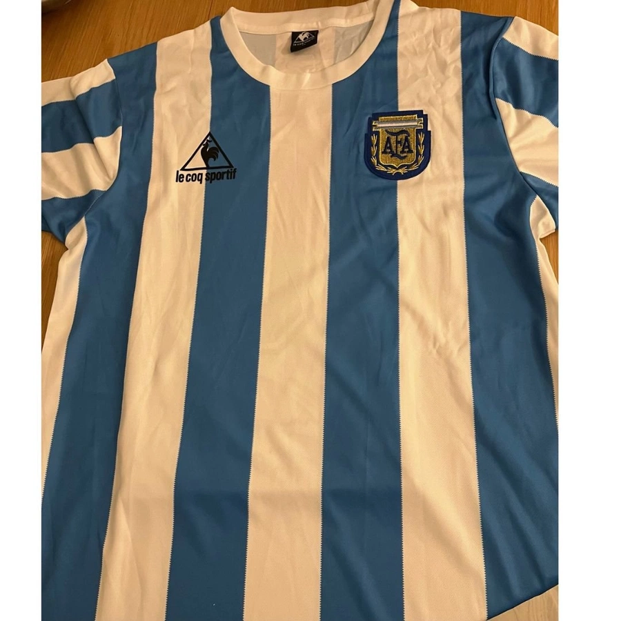 La maglia vintage store dell'Argentina, stagione 1986, personalizzata con nome e numero di Maradona.
