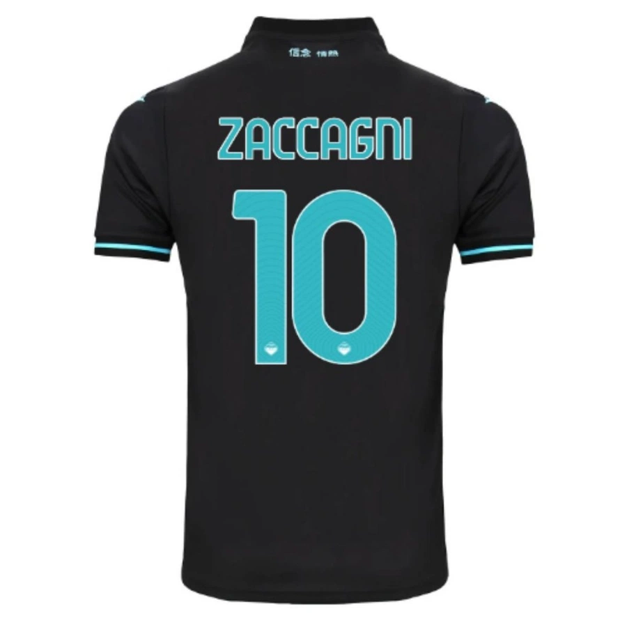La maglia store della Lazio, stagione 2024/25, personalizzata con nome e numero di Zaccagni autografata e con dedica personalizzata.