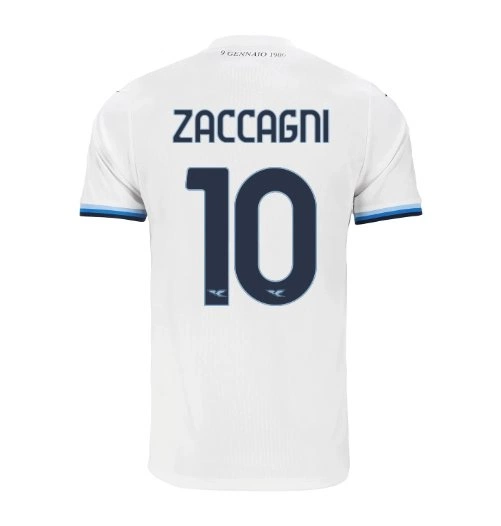 La maglia store della Lazio, modello speciale per il 125° anniversario della Lazio stagione 2024/25, personalizzata con nome e numero di Zaccagni autografata e con dedica personalizzata.