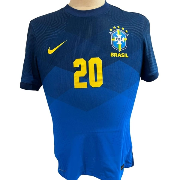 Maglia gara del Brasile preparata / indossata da Vinicius Jr. in occasione di una partita valevole per le qualificazioni al Mondiale 2022.