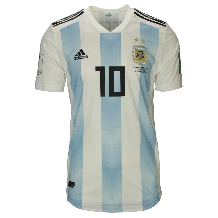 La maglia gara dell'Argentina preparata/indossata da Messi nella partita contro la Nigeria giocata a San Pietrobugo il 26/06/2018, valida per la fase a gironi del mondiale Fifa 2018, gruppo D.