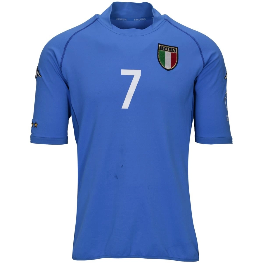 Maglia gara dell'Italia preparata / indossata da Del Piero in occasione di una partita dei Mondiali 2002, stagione 2002.