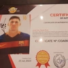 Fotografia di Messi autografata nella squadra del Barcellona .