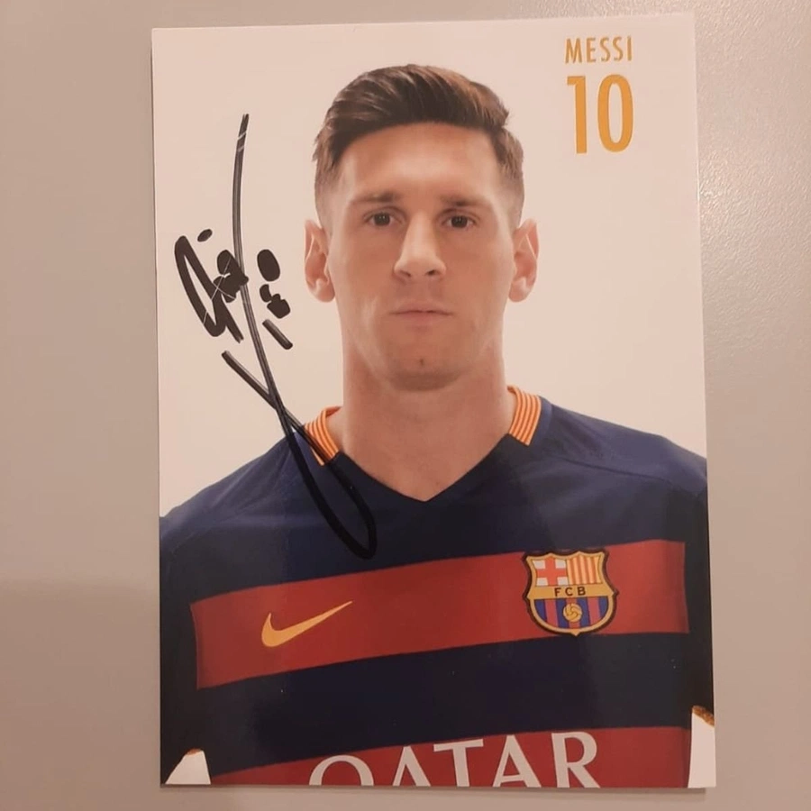 Messi ha autografato la fotografia sul fronte.