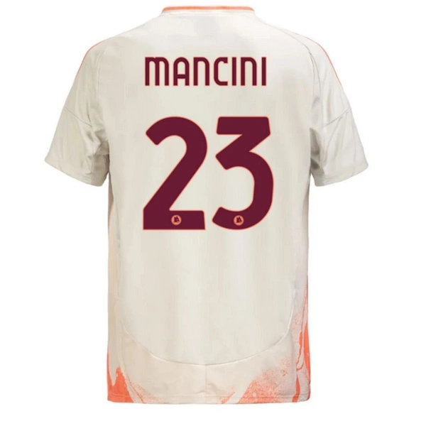 La maglia store della Roma, stagione 2024/25, personalizzata con nome e numero di Mancini, autografata dal giocatore.