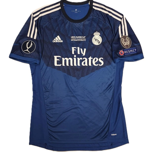 Maglia del Real Madrid preparata/ indossata da Casillas in occasione della Finale di Supercoppa Uefa contro il Siviglia giocata il 12/08/14 a Cardiff, stagione 2014/2015.