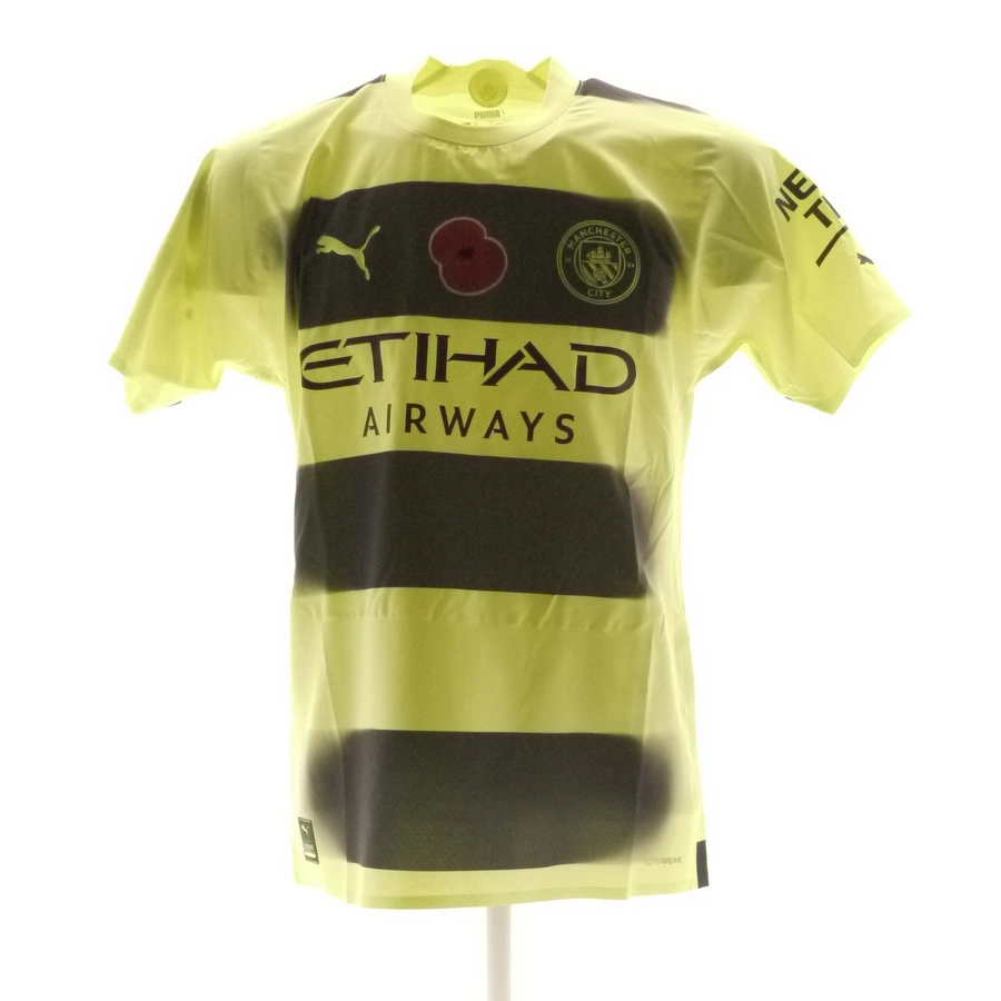 Maglia gara del Manchester City preparata / indossata da De Bruyne nella partita di Premier League contro il Leicester giocata il 29/10/22, stagione 2022/23.