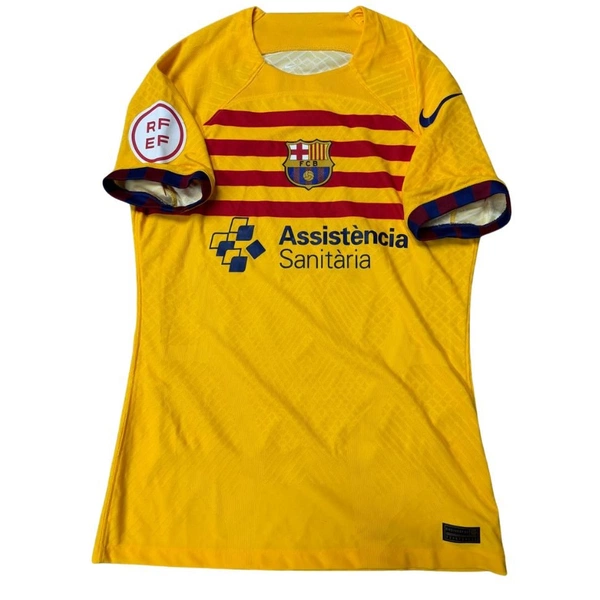 Maglia gara del Barcellona preparata / indossata da Harisson in una partita di Copa del Rey, stagione 2022/23.