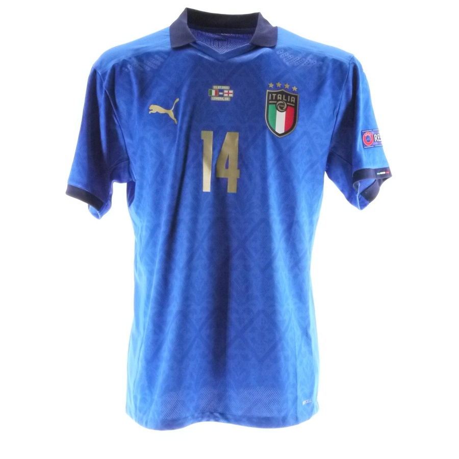 La maglia gara dell'Italia preparata / indossata da Chiesa in occasione della finale contro l'Inghilterra giocata il 11/07/2020, stagione 2021.