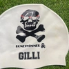 Gilli ha autografato la cuffia e gli occhialini sul fronte.