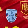 La maglia gara della Spagna preparata / indossata da Lamine Yamal in occasione della finale di Euro 2024 contro l'Inghilterra giocata il 14/07/2024, stagione 2023/24.