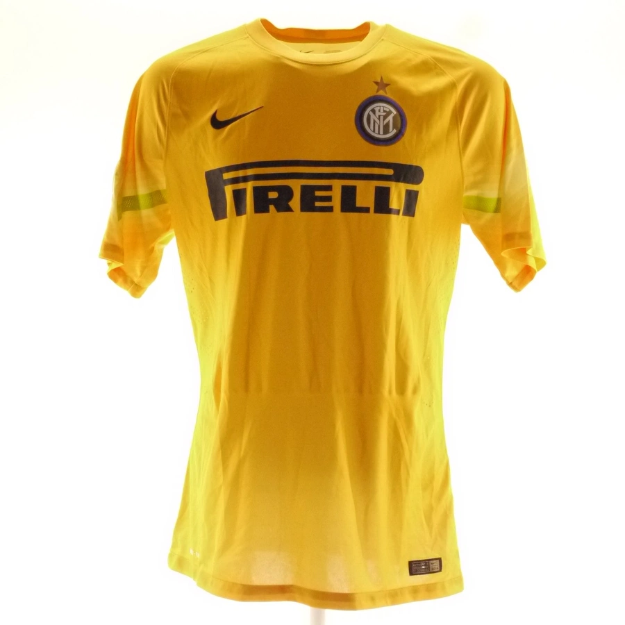 La maglia gara dell'Inter preparata / indossata da Samir Handanovic in occasione di una partita di Serie A, stagione 2014/15.