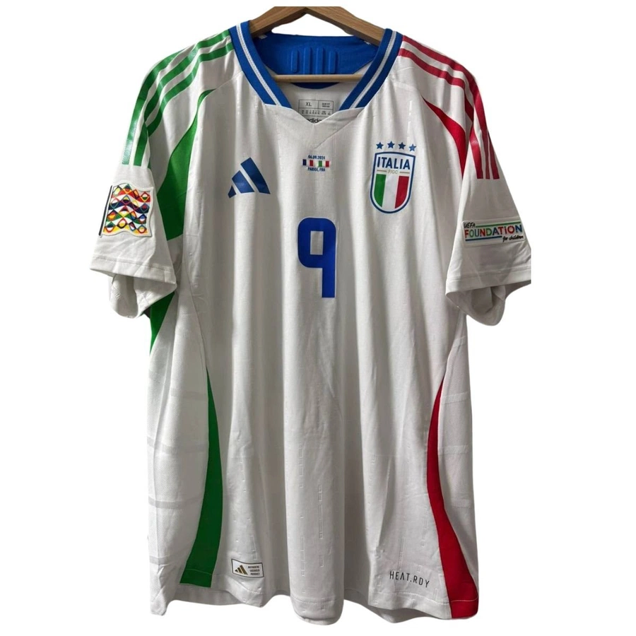 La maglia gara dell'Italia preparata / indossata da Retegui nella partita contro la Francia giocata a Parigi il 06/09/2024, valida per la fase a gironi di Nations League.