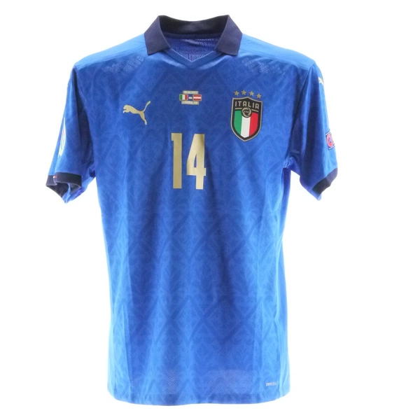 Maglia gara dell'Italia preparata / indossata da Chiesa in occasione della partita contro l'Austria giocata il 26/06/2021, valida per gli ottavi di finale di Euro2020.