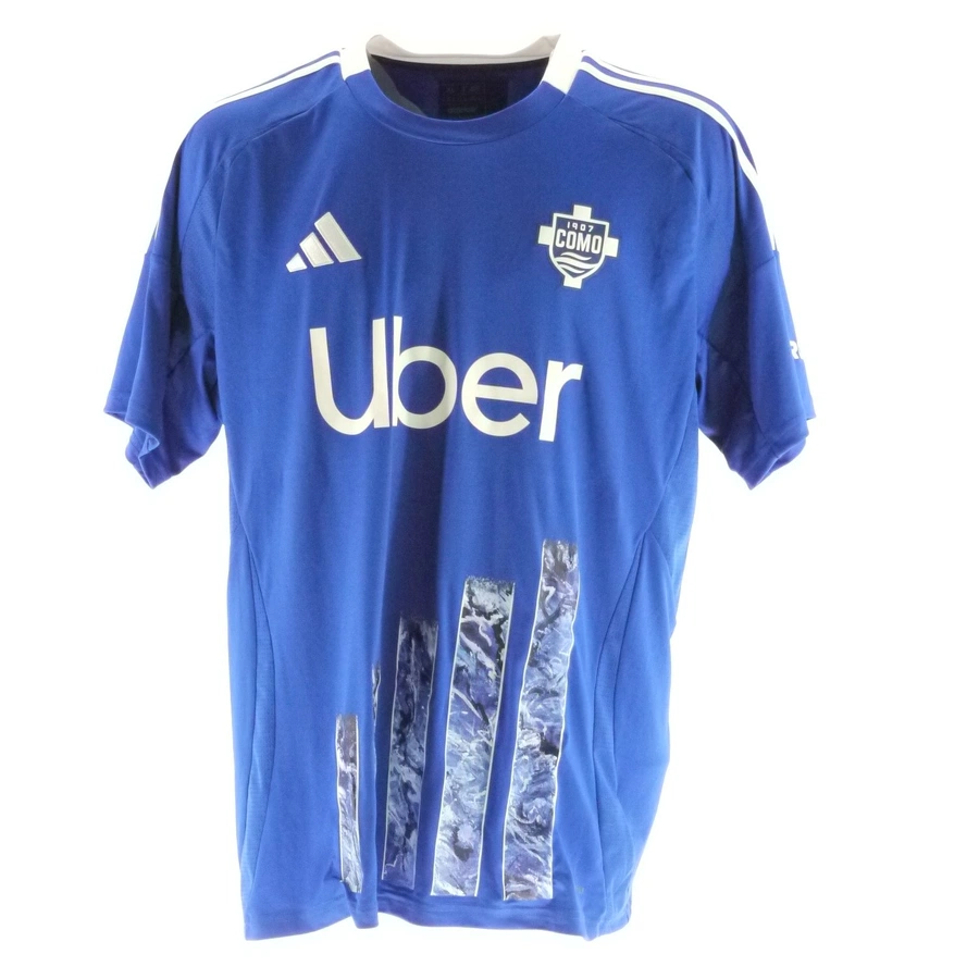 Maglia gara del Como preparata / indossata da Nico Paz in una partita di Serie A, stagione 2024/25.
