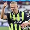 Maglia gara del Manchester City preparata / indossata da Halland in una partita di Premier League, stagione 2024/25.