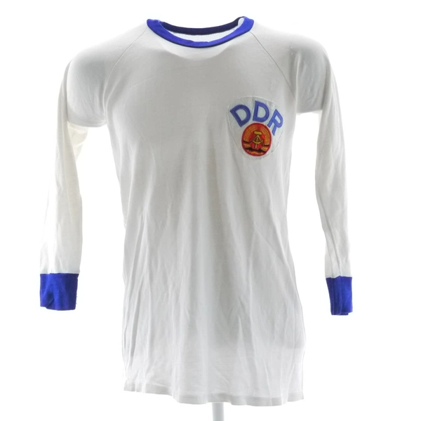 Lo stemma sul petto racchiude il logo della Germania Est e la dicitura "DDR" (Deutsche Demokratische Republik). Logo e scritta sono cuciti all'interno della stessa toppa, caratteristica delle maglie di quella stagione.