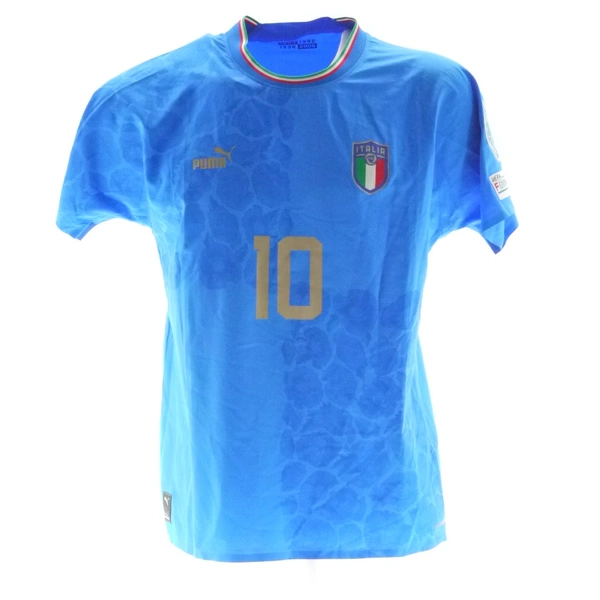 Questo cimelio fa parte della fornitura gara messa a disposizione degli atleti in occasione delle competizioni ufficiali e differisce nelle sue caratteristiche peculiari dai prodotti messi in commercio dallo sponsor tecnico, potrebbe essere stato indossato in partita e lavato dopo il termine della gara oppure preparato per il match ma poi non utilizzato.