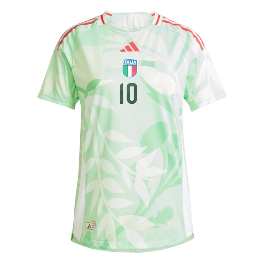 La maglia store dell'Italia, stagione 2025/26 versione away di colore verde, personalizzata con nome e numero di Cristiana Girelli, autografata e con dedica personalizzata.