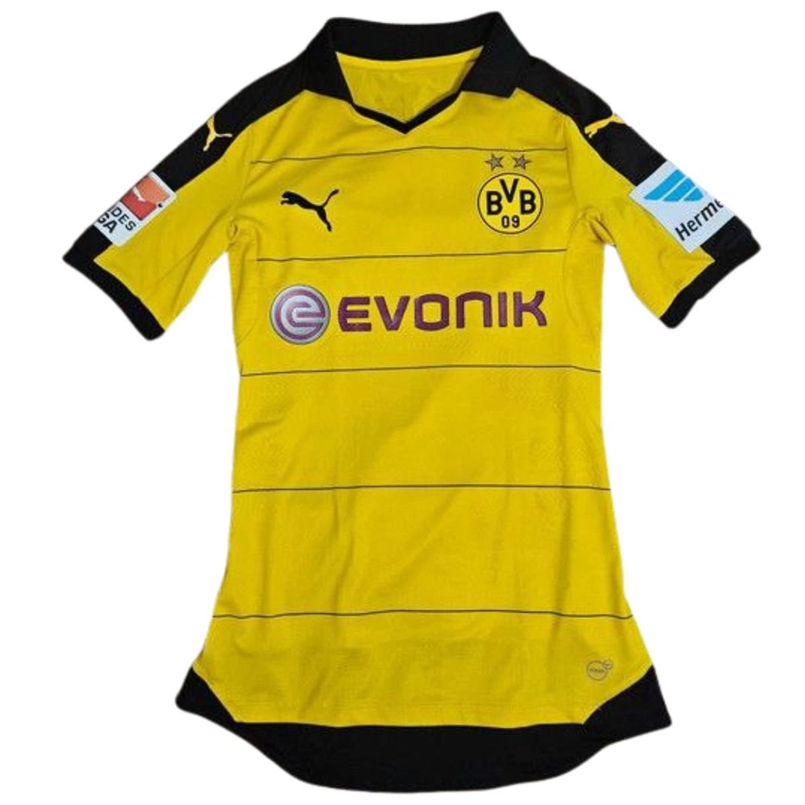 Maglia gara del Borussia Dortmund preparata / indossata da Aubameyang in occasione di una partita di Bundesliga, stagione 2015/16.