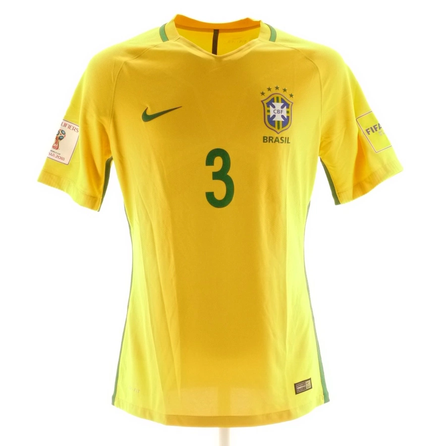 Maglia gara del Brasile preparata / indossata da Miranda in occasione di una partita di qualificazioni della Fifa World Cup 2018, stagione 2017/18.