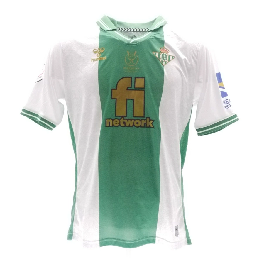 Maglia gara del Real Betis preparata / indossata da Joaquin in occasione di una partita della Supercoppa di Spagna, stagione 2022/23.