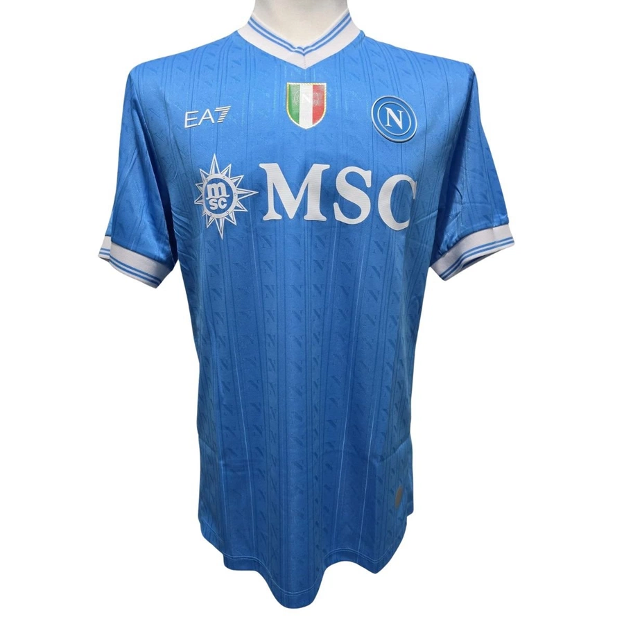 La maglia gara del Napoli preparata/indossata da De Bruyne nella partita contro il Cagliari giocata il 30/08/2025, valida per la 2° giornata di Serie A, stagione 2025/26.